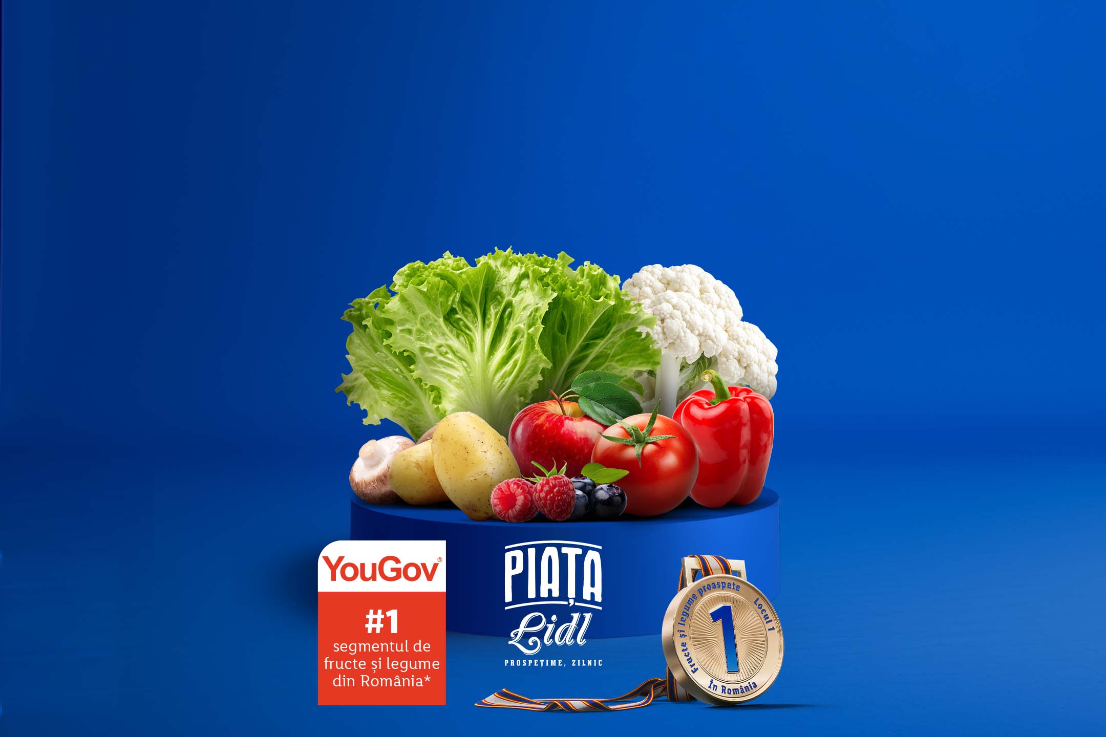 *Suntem pe locul 1 în segmentul de fructe și legume proaspete din România conform studiilor realizate de YouGov.